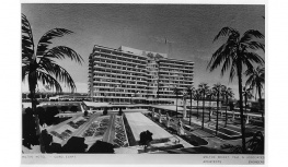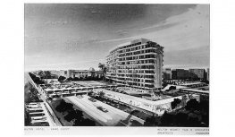 Arab league building next door [by Mahmoud Riad], the municipality of Cairo decided to develop a hotel to serve the diplomats when the league was in session. The project started in 1957 as a joint venture with American architect Welton Becket [...] Project team included Mahmoud Riad (Project Architect), Hussein Bakry, Tawfik Helmy, Safaa Seroor, Abd el Moneim Ahmed and Hassan Mansour. The Hotel was later acquired by the Ritz Carlton and transformed into the Nile Ritz Carlton." (RiadArchitecture)